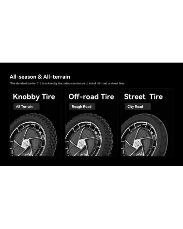 Una innovación clave en el F18 es su avanzado sistema de suspensión modular, que combina absorción de impactos de aire y resorte con amortiguación y precarga ajustables. El cuadro cuenta con 100 mm de recorrido, lo que lo hace ideal tanto para el crucero urbano como para la exploración todoterreno. La comodidad del conductor se mejora aún más con un sistema de pedales ergonómico con un diseño mejorado antideslizante y personalización de ángulo de altura. Además, la seguridad y el control están gestionados por una placa base de próxima generación con impermeabilización independiente y actualizaciones OTA en todos los sistemas.